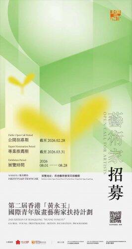 評選結果將於2026年5月公佈,獲選入圍的藝術家將於同年8月參與在香港藝術發展局展藝館舉行的年度展覽。 報名詳情可瀏覽//hkhyyyaip.tkww.hk/newDetail?uid=1998618971666653186。
