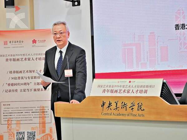 國家藝術基金2026年度藝術人才培養資助項目「青年版畫藝術家人才培訓」昨日(13日)在中央美術學院(央美)正式開班。該項目由香港大公文匯財經公關集團有限公司主辦、央美版畫系合作支持,聚焦「香港回歸30周年」,組織全國30名青年才俊接受內地與香港專家的聯合指導。除了30天的集中式培訓,學員還將參與香港實地採風、線上輔導、主題創作等,並於8月在港舉辦成果展。